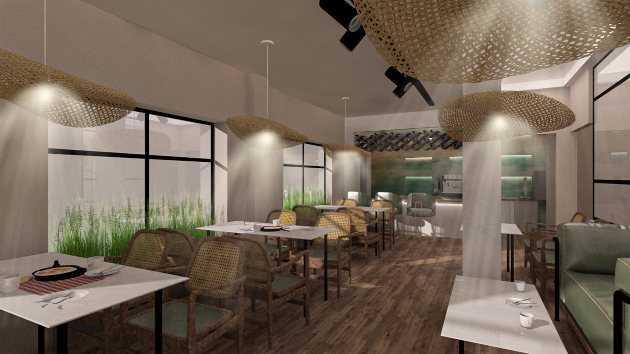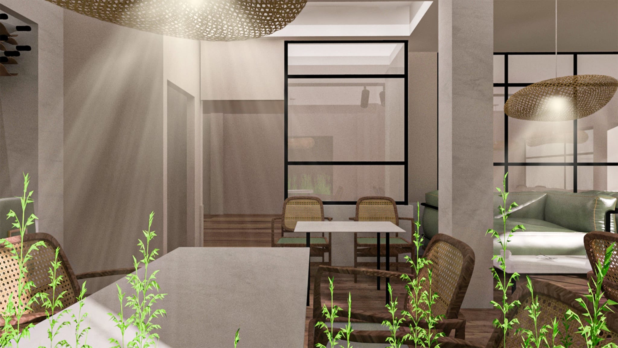 The expansion process began with a careful assessment of the existing space, aiming to seamlessly integrate the new reception area without disrupting the flow of the hotel. The choice of wood and marble reflects a timeless elegance, while the polished cement adds a modern, industrial edge. The use of straw elements introduces texture and warmth, offering a subtle nod to traditional craftsmanship. Plant life is strategically placed to enhance the natural feel and soften the minimalist lines of the design. Special attention was given to the bar area, ensuring it was both functional and stylish, offering guests an intimate space to enjoy a brief respite. The construction focused on creating a cohesive, inviting space that enhances the hotel's overall guest experience.