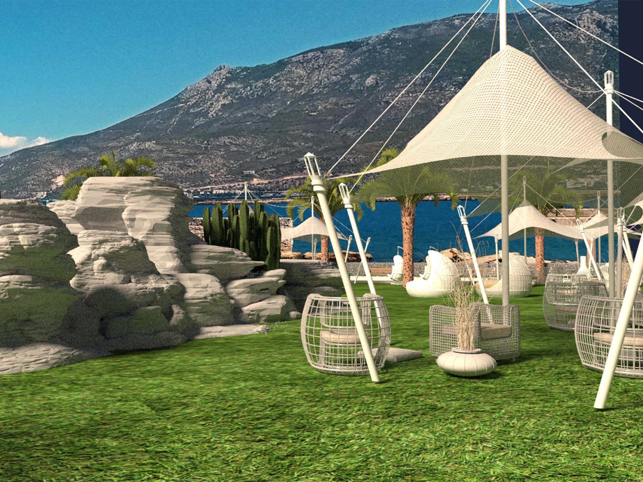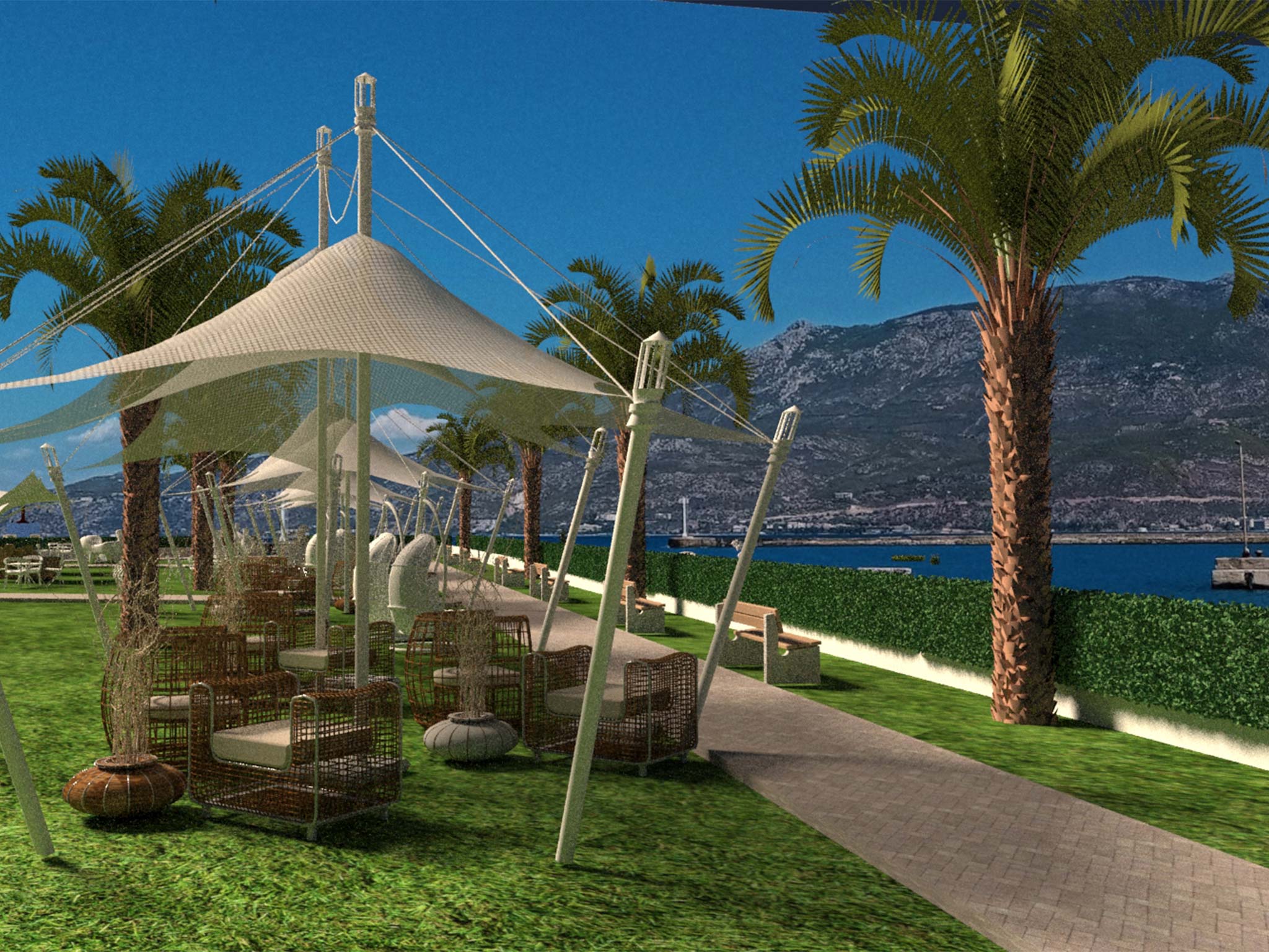 Located in the scenic area of Poseidonia, Corinth, this outdoor space serves as an extension of the reception area for a newly constructed hotel, offering accommodations ranging from luxury villas to simple rooms. The design is focused on creating a seamless connection between the natural environment and the guest experience, utilizing organic materials that complement the breathtaking landscape. Guests are treated to spectacular views of the Corinthian Gulf’s sunset, the Isthmus Canal, and the historic Diolkos, ensuring a serene yet inspiring atmosphere. Rock gardens featuring small lakes and water features dominate the landscape, enhancing the sense of tranquility and creating a harmonious balance with the surrounding environment. The outdoor space not only functions as a welcoming area but also as a place for guests to immerse themselves in the natural beauty of the region.